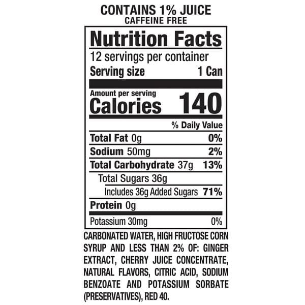 Carbonated Water, High Fructose Corn Syrup, Less Than 2% Of: Ginger Extract, Cherry Juice Concentrate, Natural Flavors, Citric Acid, Sodium Benzoate And Potassium Sorbate (preservatives), Red 40