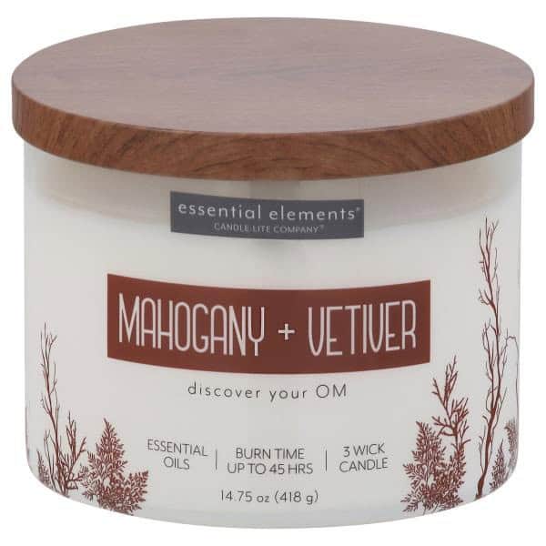 Essential oils in a soy wax blend. Approx burn time 25-45 hours. Facebook. Wick contains no lead. www.candle-lite.com. Made in USA with USA & foreign parts/materials.