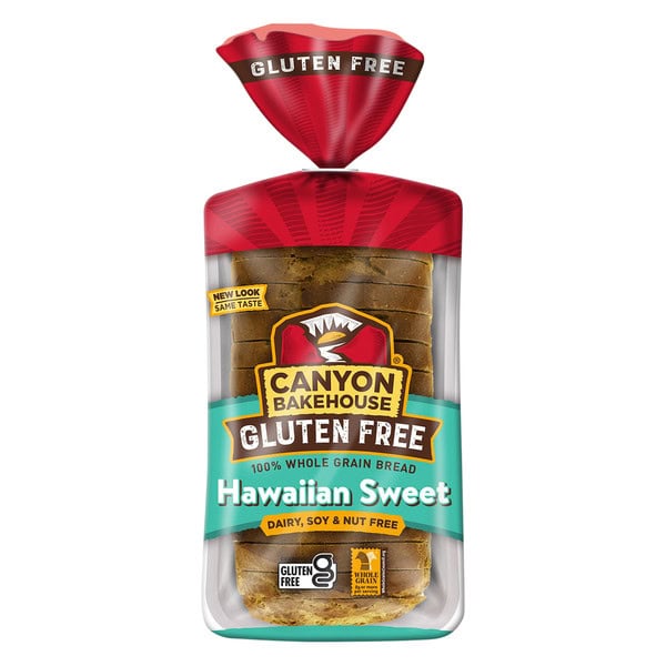 Let Canyon Bakehouse® Gluten Free Hawaiian Sweet Sandwich Bread whisk you away to delicious tropical sweetness. This 100% whole grain bread loaf is certified gluten free without compromising taste or texture. Plus, it’s free from allergens like dairy, nuts and soy so your whole family can enjoy the taste of fresh bakery bread without hesitation. Find Canyon Bakehouse Hawaiian Sweet Bread in the fresh bread aisle and eat within five days of opening the inner bag. Say ‘Aloha!’ to elevated French toast and BBQ sandwiches with these sweet bread slices. Stock your pantry with all the Canyon Bakehouse gluten free products, including gluten free bagels, English muffins, hamburger buns and more.