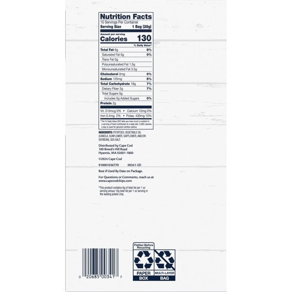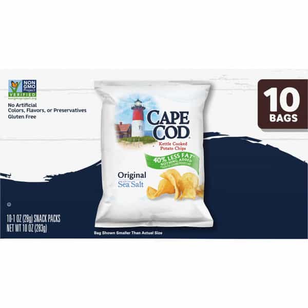 Cape Cod Potato Chips are known for their quality taste, hearty crunch and distinctly remarkable flavors. These delicious chips are made with premium ingredients beginning with oil, salt and potatoes. Available in many traditional and unique varieties, Cape Cod Potato Chips maintain the tradition of using high quality ingredients in all its snacks.