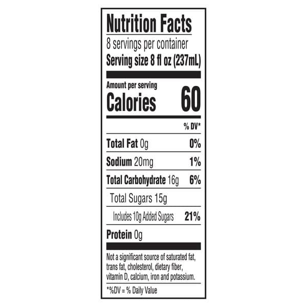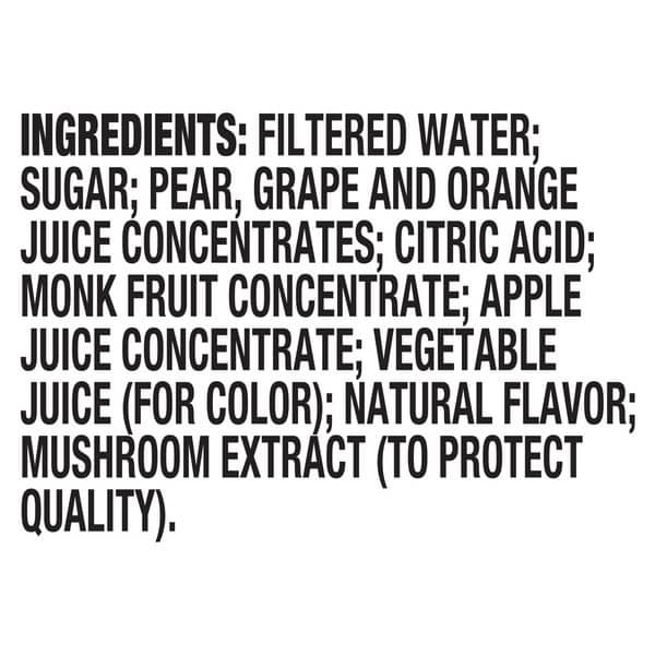 Filtered Water; Sugar; Pear, Grape And Orange Juice Concentrates; Citric Acid; Monk Fruit Concentrate; Apple Juice Concentrate; Vegetable Juice (for Color); Natural Flavor; Mushroom Extract (to Protect Quality).