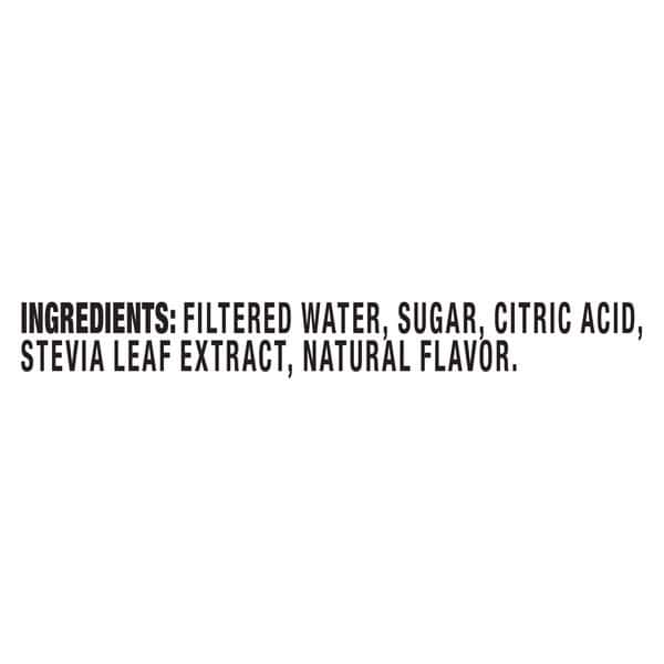 Filtered Water, Sugar, Citric Acid, Stevia Leaf Extract, Natural Flavor.
