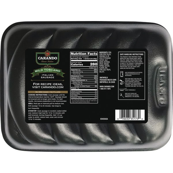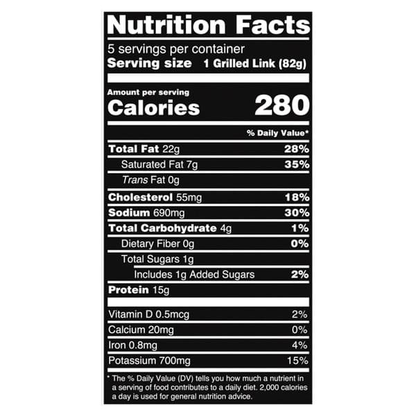 Cooking Instruction: Cook sausage until the internal temperature reaches 165 degrees F. Sausage should be browned and no longer pick inside. For best results, microwave preparation is not recommended. Grill: Heat gas or charcoal grill to medium-low. Grill sausage 15 to 20 minutes. Use tongs to turn frequently. Stovetop: Cook sausage in nonstick coated skillet over medium-high heat for 10 to 15 minutes until well browned, turning frequently. Add 1/2 cup water to skillet; reduce heat, cover and simmer 10 to 15 minutes.