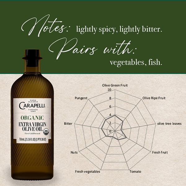 • One 16.9 fl oz bottle of Carapelli USDA and Non-GMO Certified Premium Organic Extra Virgin Olive Oil