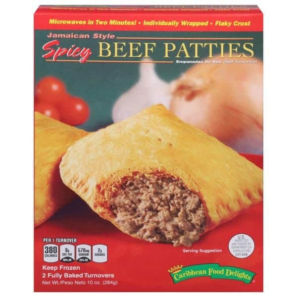 Filling: Ground Beef, Water, Onions, Modified Food Starch, Bread Crumbs (wheat Flour, Salt, Yeast), Seasoning [(salt, Soup Base (dextrose, Salt, Corn Starch, Hydrolyzed Vegetable Protein (soybean), Natural Flavors, Onions, Spice Blend, Garlic, Caramel Color, (palm Oil), Flavoring), Monosodium Glutamate, Soy Sauce (water, Soybeans, Wheat Salt)], Hot Peppers, Caramel Color And Thyme. Crust: Enriched Unbleached Flour (wheat Flour, Niacin, Reduced Iron, Thiamine Mononitrate, Riboflavin, Folic Acid), Water, Palm Oil, Sugar, Salt, Extractives Of Turmeric And Annatto.