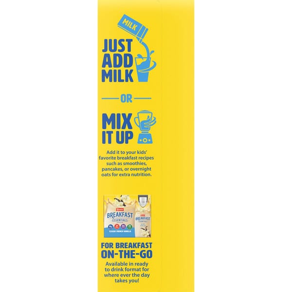 Milk just add milk or mix it up. Add it to your kid’s favorite breakfast recipes such as smoothies, pancakes, or overnight oats for extra nutrition. Easy as 1-2-3! To Prepare: 1. Empty packet into a large glass. 2. Stir in 1 cup cold skim milk. 3. Enjoy!