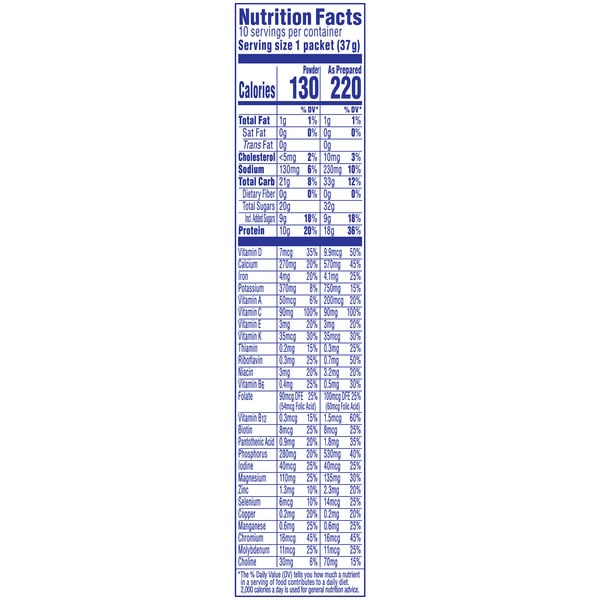 Nonfat Dry Milk, Sugar, Cocoa Processed With Alkali, Whey Protein Isolate, Less Than 2% Of Lactose, Vitamins And Mineralsǂ, Natural And Artificial Flavor, Carrageenan, ǂvitamins & Minerals: Calcium Phosphate, Magnesium Hydroxide, Sodium Ascorbate (vitamin C), Dl-alpha Tocopheryl Acetate (vitamin E), Iron (ferric Orthophosphate), Niacinamide, Manganese Sulfate, Copper Gluconate, Zinc Oxide, Pyridoxine Hydrochloride (vitamin B6), Calcium Pantothenate, Vitamin A Palmitate, Thiamine Mononitrate, Riboflavin, Folic Acid, Phytonadione, Chromium Chloride, Sodium Molybdate, Vitamin D3, Vitamin B12, Biotin