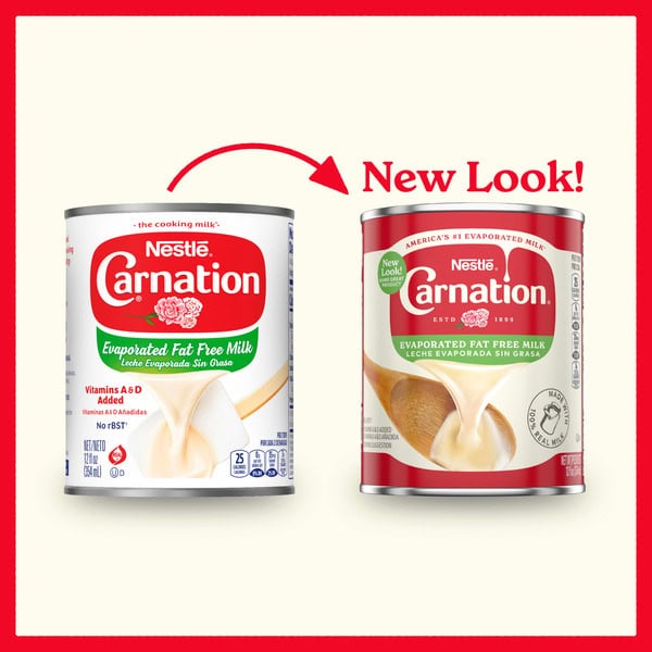• RICH, CREAMY, DELICIOUS: NestlĂ© Carnation Evaporated Fat Free Milk is the cooking milk with added vitamin D. This can of milk is nutritious and free from rBST*, and the perfect addition for all your recipes (*no significant difference has been show between milk derived from rBST-treated and non-rBST cows)