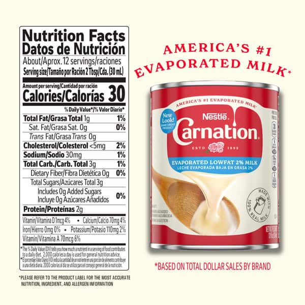 Discover The Rich And Creamy Versatility Of Nestlé Carnation Evaporated Lowfat 2% Milk, Your Go-To Cooking Milk For Culinary Delights. Crafted With The Highest Quality Ingredients, Carnation Evaporated Milk Is A Milk With Half The Water Removed, Resulting In A Creamy Texture That Enhances Both Sweet And Savory Recipes. Carnation Evaporated Milk Is Ideal For Creating Indulgent Dishes Such As Mac And Cheese, Mashed Potatoes, Flan, Tres Leches, Pies, And Fudge. Conveniently Packaged In A Recyclable Metal Can, Carnation Milk Is Designed For Long Shelf Life, Making It A Practical Addition To Your Pantry. Simply Shake Well Before Use, Refrigerate After Opening, And Consume Within A Few Days. Store In A Cool, Dry Place To Maintain Its Freshness And Quality.