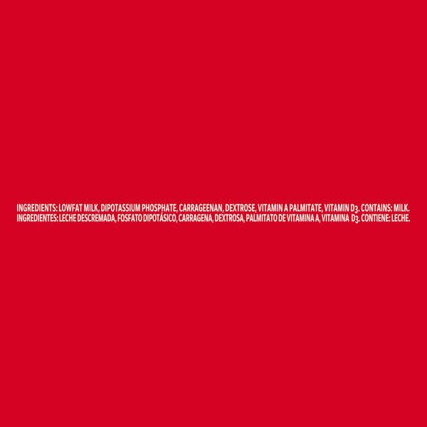 Lowfat Milk, Dipotassium Phosphate, Carrageenan, Dextrose, Vitamin A Palmitate, Vitamin D3 Ingredientes. Leche Descren Faceato DinatĂ¡cico Addacena Rev Tato Delitalia