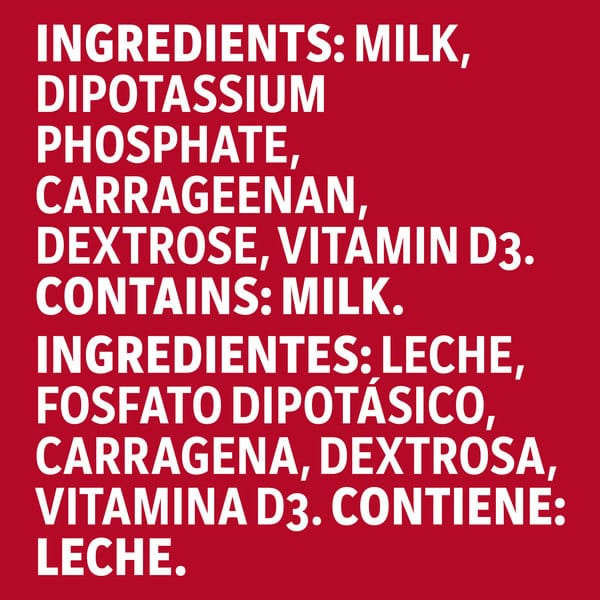 Milk, Dipotassium Phosphate, Carrageenan, Dextrose, Vitamin D3. Conta