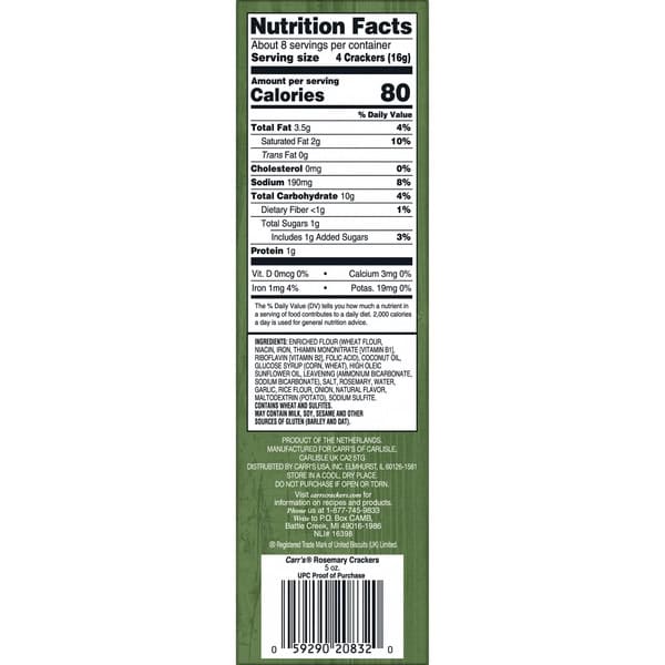 • A 5-ounce box containing Carr’s Rich and Savor Rosemary Crackers; Packaged for freshness and great taste
