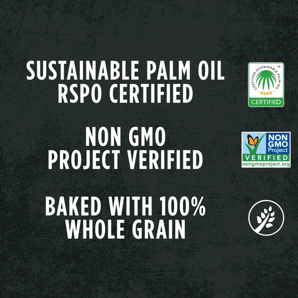 • Made with quality ingredients for excellent taste and texture; Non-GMO Project Verified: RSPO Certified Sustainable Palm Oil; Contains wheat ingredients; May contain milk and soy ingredients