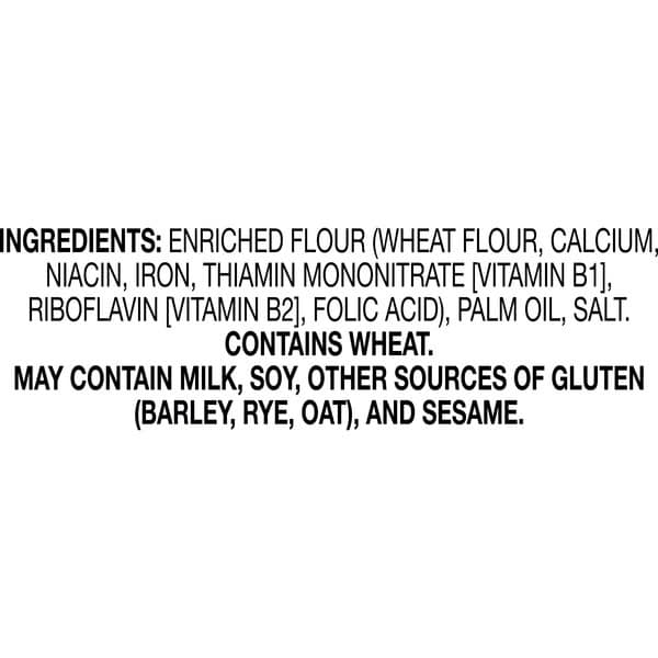 Wheat Flour, Palm Oil, Salt, Ferrous Sulfate, Niacinamide, Thiamine Mononitrate, Riboflavin, Folic Acid