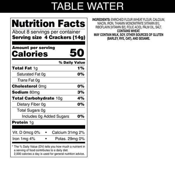 • Include one, 4.25oz box containing Carr’s Original table water crackers; Packaged for freshness and great taste