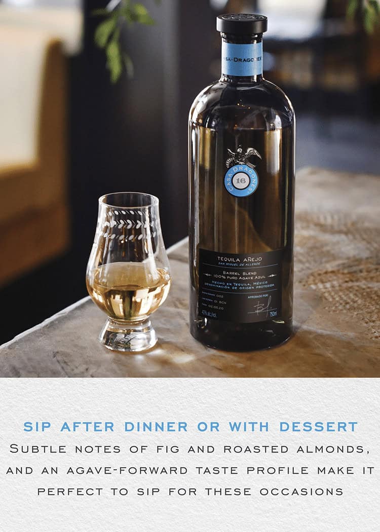 Mexico – 0% – Casa Dragones Añejo Barrel Blend is a small batch, sustainable, unique blend of 100% Pure Blue Weber Agave, aged in new French and American oak barrels for over a year, and masterfully blended together at the end of the aging process.