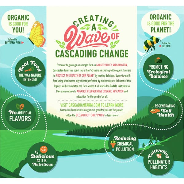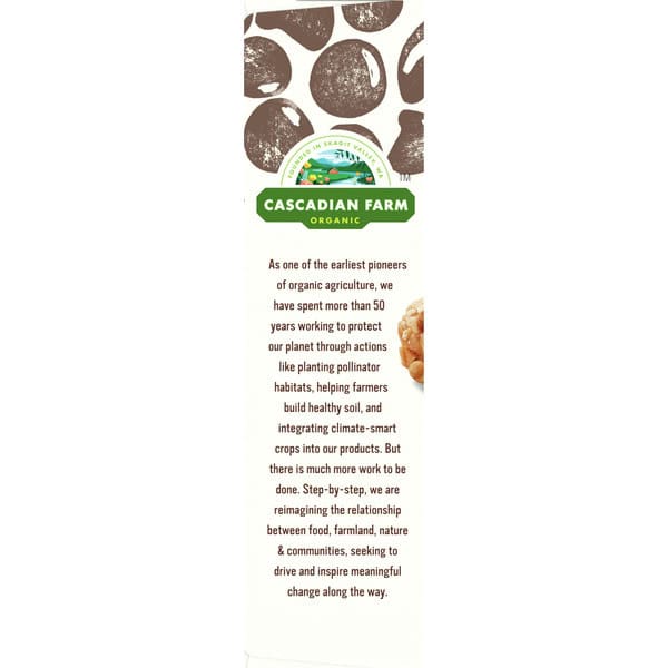 Cascadian Farm Organic Dark Chocolate Chip Chewy Granola Bars are packed with organic chocolate paired with wholesome rolled oats for sweet chewy goodness in every bite. With no artificial flavors or preservatives, these chocolate chip granola bars make an organic snack the whole family will enjoy. Take them on your next adventure — whether you need a convenient breakfast bar, hiking fuel or a picnic treat. Cascadian Farm loves wholesome, organic ingredients perfected by Mother Nature, and every Cascadian Farm granola bar supports farmers who use sustainable practices to regenerate the land and their communities.