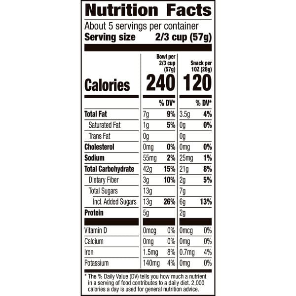 • VANILLA GRANOLA: Made with organic whole grain oats, crisp rice and sliced almonds with vanilla flavor