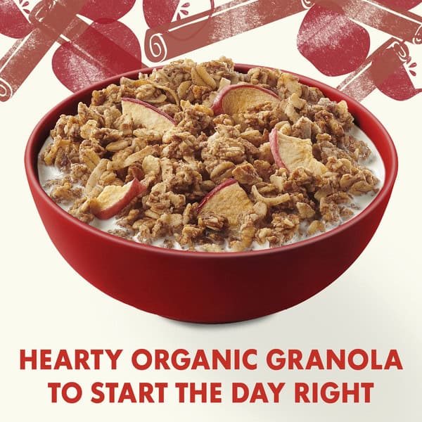 Cascadian Farm Organic Cinnamon Apple Granola is a delightful blend of whole grain oats and apples dusted with cinnamon. Enjoy this cinnamon granola cereal with milk as part of a tasty cold breakfast or eat it by the handful for a quick and easy snack. Best of all, this Cascadian Farm Granola features 23 grams of whole grain* per serving and no added sugar, sweetened with fruit.** The rich, sweet flavor of dates gives this organic granola just the right hint of sweetness. Now in a convenient resealable pouch.
