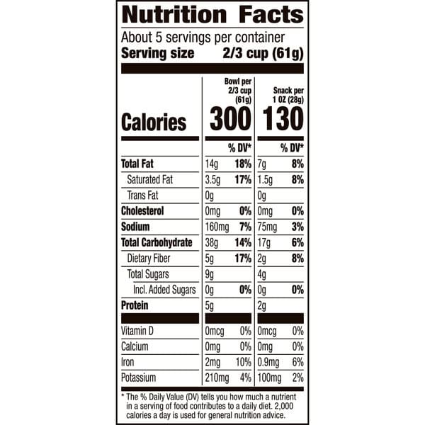 *23g whole grains per serving. At least 48g recommended daily. **This no added sugar granola is sweetened with dried date powder. See ingredients for complete list of ingredients.
