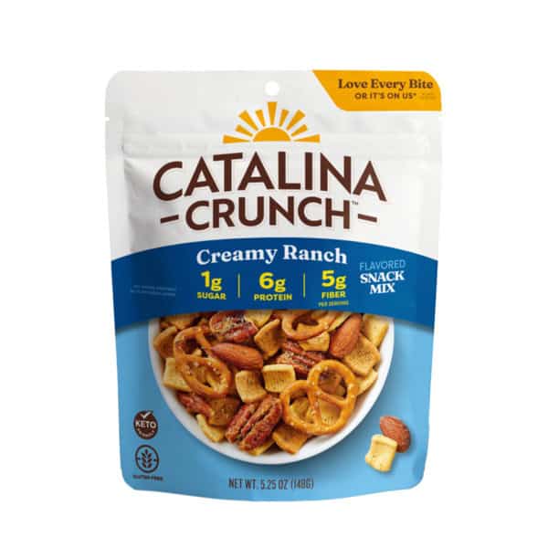• Catalina Crunch Creamy Ranch Snack Mix is packed with 7 grams of protein per 1/2 cup serving