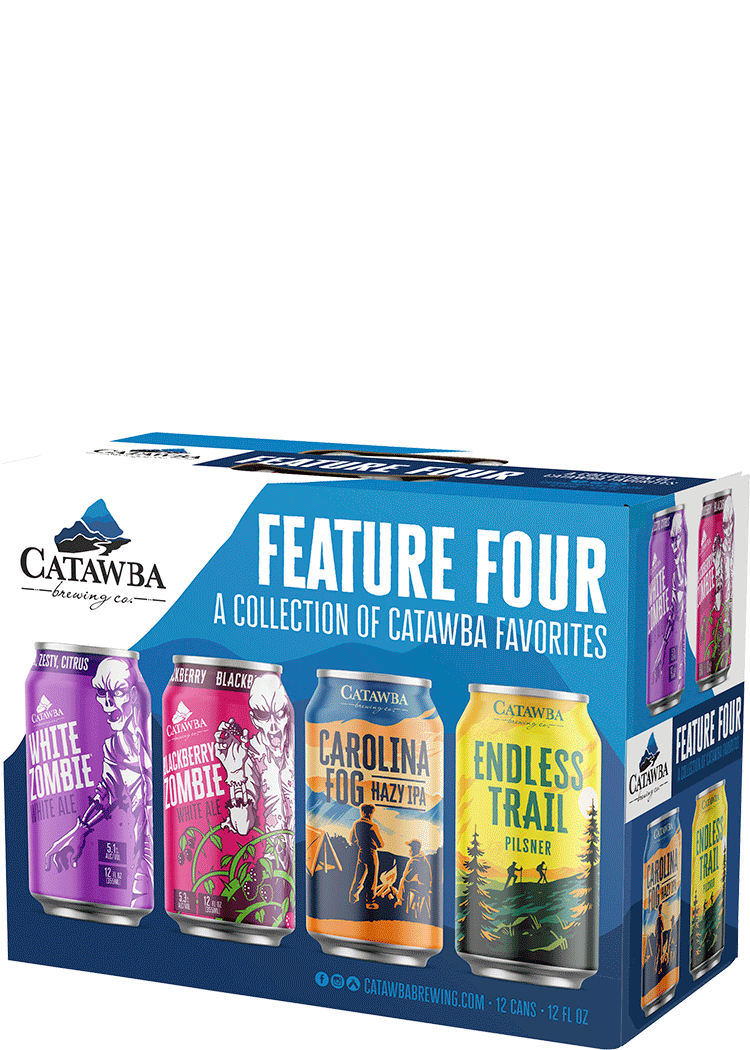 United States – North Carolina – A collection of Catawba favorites including White Zombie, Carolina Fog Hazy IPA, Endless Trail Pilsner, and fruited Blackberry Zombie. Cheers!
