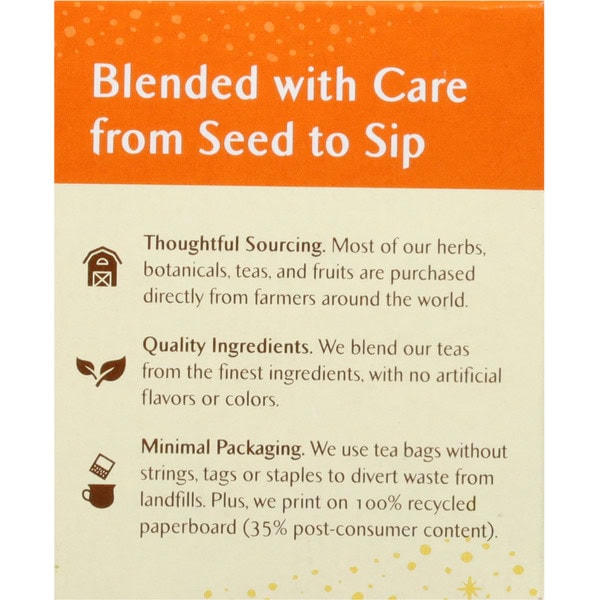Orange Peel, Rosehips, Hawthorn, Chamomile, Natural Peach Flavor With Other Natural Flavors (8%), Blackberry Leaves, Hibiscus, Peaches (1%), Citric Acid, Paprika (color)