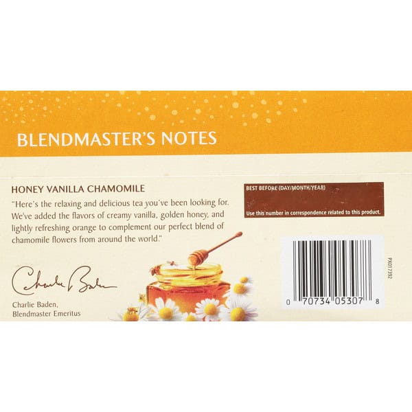 Chamomile, Orange Peel, Natural Honey Flavor With Other Natural Flavors, Licorice, Roasted Chicory, Lemongrass