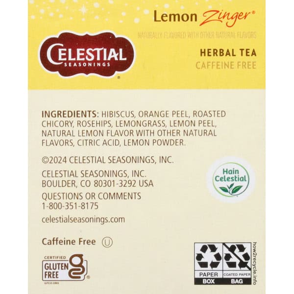 In this classic brew, we blend real lemons and lively lemongrass with hibiscus, the vibrant tropical flower that gives all Zinger® teas their signature tangy taste and ruby-red color. It’s a bright tea that’s perfect in any weather.”