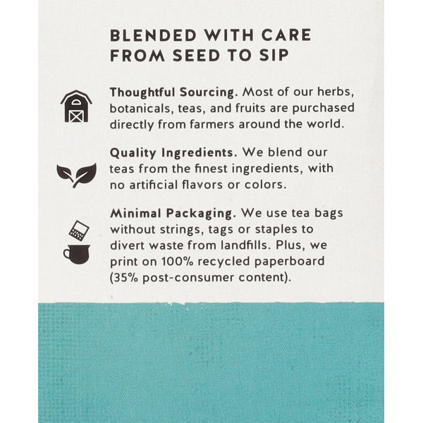 • Sustainable Packaging. We use tea bags without strings, tags or staples, keeping tons of material out of landfills every year.