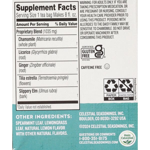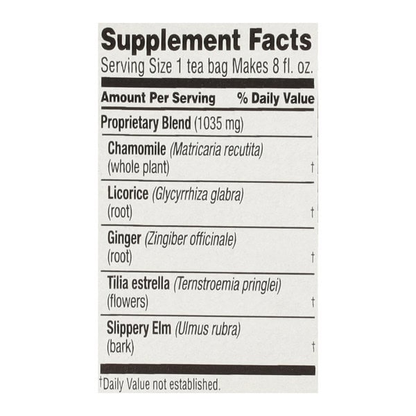 This special blend features licorice root and slippery elm bark to coat and soothe the throat, plus calming herbs and botanicals like spearmint, chamomile, lemongrass and ginger for a comforting aroma and flavor.*