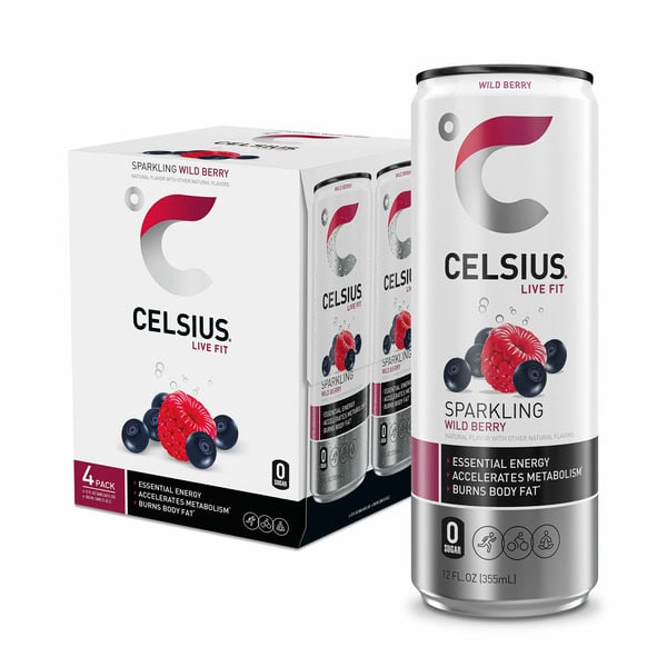 CELSIUS® is functional, Essential Energy, a better-for-you, premium alternative to traditional energy drinks. As a global, lifestyle fitness drink, CELSIUS® was created to help people LIVE FIT, exceed their goals and elevate their everyday lives. Made with proven, premium ingredients, 7 Essential Vitamins and zero sugar, no artificial colors, no aspartame, no high fructose corn syrup and non-GMO. CELSIUS® is vegan, gluten-free and Kosher. Our proprietary MetaPlus blend contains green tea extract with EGCG. It also includes guarana seed extract, ginger root for flavor and digestion, vitamin C to help support your immune system, vitamin B for energy production, and chromium to help control hunger, making it an ideal pre-workout drink. Enjoy the taste of freshly picked berries with the sweet and refreshing berry-licious flavors of CELSIUS® Sparkling Wild Berry! Made with clinically proven ingredients, this carbonated flavor of CELSIUS® has the perfect balance of flavor and energy that serves as an awesome pick-me-up for active lifestyles. Make CELSIUS® your go to choice for Essential Energy! CELSIUS® is available in 12 Fl Oz slim cans and sold in convenient packs of 4.
