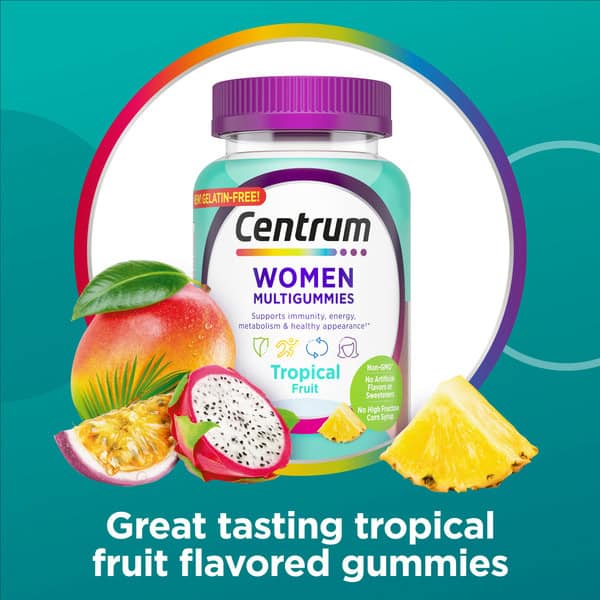 • 100 count bottle of delicious tropical fruit flavored Centrum Women’s Multivitamin Gummies for Immune Support, Energy, Metabolism and Healthy Appearance (1)