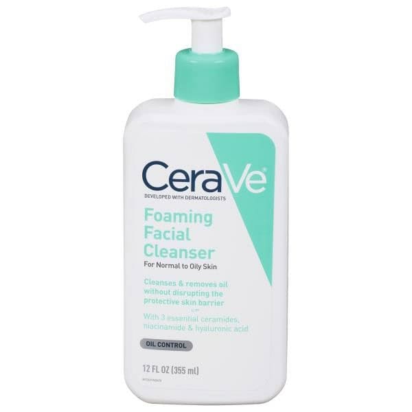 Developed with dermatologists. Helps repair and restore protective skin barrier. Non-comedogenic, non-drying, non-irritating. With ceramides, Niacinamide, and hyaluronic acid. Make CeraVe Foaming Facial Cleansers a vital part of your daily skin care regimen. Ideal for normal to oily skin types. Use daily morning and night to gently remove dirt, oil and makeup without disrupting the skin’s natural protective barrier. Ceramides help moisturize, restore and maintain the skin’s natural protective function. Niacinamide helps the skin produce more natural ceramides and fatty acids essential for repairing and restoring the skin barrier. May also reduce skin redness. Hyaluronic acid (a humectant) attracts moisture to the top layer of the skin, ensuring skin remains hydrated after washing. Ceramides help repair the skin barrier. Niacinamide helps produce more natural ceramides in the skin. Hyaluronic acid attracts needed moisture. Try our full line of cleansers and moisturizers for a complete skin care routine. E accepted. NationalEczema.org. National Eczema Association. www.cerave.com.