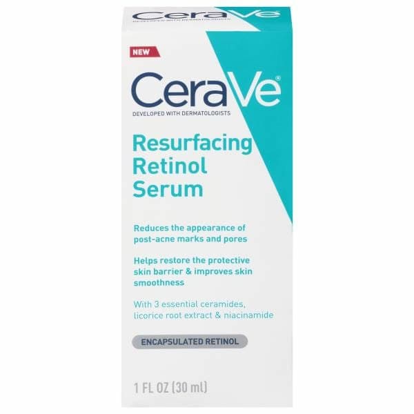 New. Developed with dermatologists. Reduces the appearance of post-acne marks and pores. Helps restore the protective skin barrier & improves skin smoothness. With 3 essential ceramides, licorice root extract & niacinamide. Encapsulated retinol. Developed with dermatologists, this formula with 3 essential ceramides, encapsulated retinol, and licorice root extract – reduces the appearance of post-acne marks and pores. This lightweight, fast-absorbing serum, with encapsulated retinol and licorice root extract, helps brighten and resurface the skin. Gentle formula, with ceramides 1, 3, and 6-11, helps restore the protective skin barrier while MVE Technology provides controlled release of ingredients. Skin appears refined, with a healthy appearance. Non-comedogenic. Paraben-free. Fragrance-free. This formula contains: MVE Technology Patented delivery system for continuous release. Retinol: Encapsulated Retinol: Helps resurface skin. This formula is: Gentle on skin. Does not leave skin feeling dry. Non-comedogenic. Won’t clog pores.