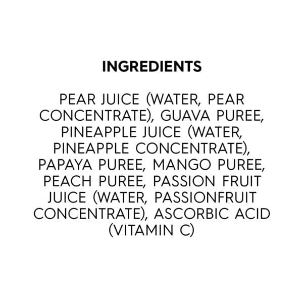 Pear Juice, Guava Puree, Pineapple Juice, Papaya Puree, Mango Puree, Peach Puree, Passion Fruit Juice.