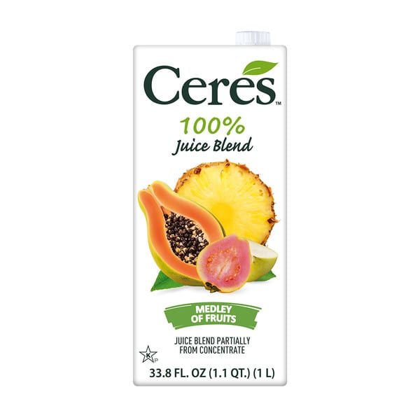 Gluten-free. Pear, guava, pineapple & other fruit. Ceres quality. Nature’s Perfect Juice: 100% natural; no sugar added; no preservatives; no artificial colors; rich in Vitamin C. This juice is not low calorie or calorie reduced. Please refer to the nutritional panel for further information on sugar and calorie content. The Ceres Valley: Tucked away in a crescent of mountains at the Southern tip of Africa, lies a beautiful fertile valley called Ceres. Named after the Roman Goddess of Fruitfulness, and blessed with abundant sunshine and fertile soil, it is home to some of the world’s most succulent fruit. Sun-ripened to perfection, the fruit from this valley is full of Nature’s best offerings. Now this is available in 100% fruit juice called Ceres, winner of multiple international taste and quality awards. To add variety to our range, we also carefully select top quality exotic fruits grown further afield. As pure as nature intended, Ceres 100% fruit juice is the perfect drink for the whole family. Ceres – Nature’s Perfect Juice. Natural juice of only specially selected fruit, pasteurized to guarantee quality. www.ceresjuices.com. recyclecartons.com. Consumer services line 1-800-905-1116. Tetra Pak: Protects what’s good. Tetra Brik: Aseptic Tetra Pak. www.tetrapak.com. Be responsible. Please recycle. Recyclable only where facilities exist. Visit recyclecartons.com. FSC: Mix – Board. Product of South Africa.