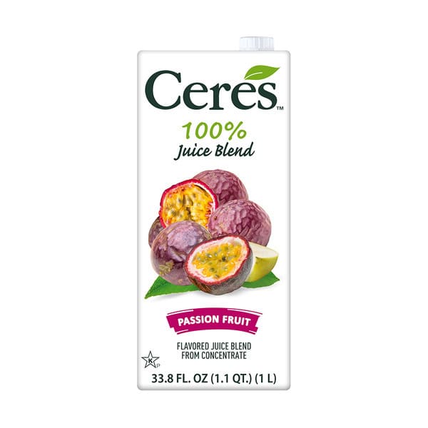 Gluten-free. Passion fruit & other fruit. Ceres quality. Nature’s Perfect Juice: 100% natural; no sugar added; no preservatives; no artificial colors; rich in Vitamin C. This juice is not low calorie or calorie reduced. Please refer to the nutritional panel for further information on sugar and calorie content. The Ceres Valley: Tucked away in a crescent of mountains at the Southern tip of Africa, lies a beautiful fertile valley called Ceres. Named after the Roman Goddess of Fruitfulness, and blessed with abundant sunshine and fertile soil, it is home to some of the world’s most succulent fruit. Sun-ripened to perfection, the fruit from this valley is full of Nature’s best offerings. Now this is available in 100% fruit juice called Ceres, winner of multiple international taste and quality awards. To add variety to our range, we also carefully select top quality exotic fruits grown further afield. As pure as nature intended, Ceres 100% fruit juice is the perfect drink for the whole family. Ceres – Nature’s Perfect Juice. Natural juice of only specially selected fruit, pasteurized to guarantee quality. www.ceresjuices.com. recyclecartons.com. Consumer services line 1-800-905-1116. Tetra Pak: Protects what’s good. Tetra Brik: Aseptic Tetra Pak. www.tetrapak.com. Be responsible. Please recycle. Recyclable only where facilities exist. Visit recyclecartons.com. FSC: Mix – Board. Product of South Africa.