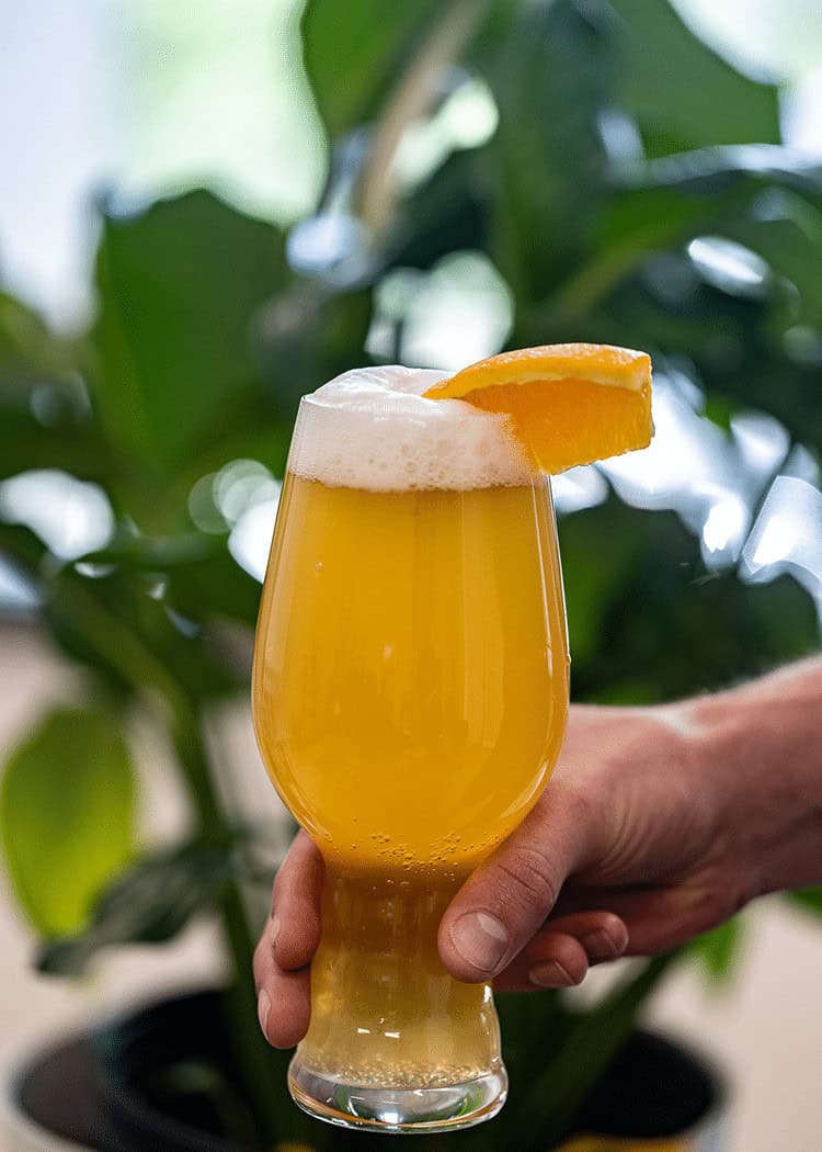 Colorado – Alcohol Free Witbier – 0.0% ABV. Unfiltered Belgian-style white ale with blood orange peel, coriander, and Hallertau Tradition hops for medium body & refreshing flavors. Pairs well with carbs, late nights, spicy foods, fried chicken, hot showers, bad movies,sunshine, vanilla.