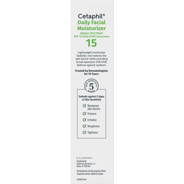 • CETAPHIL DAILY FACIAL MOISTURIZER SPF 15: Three-in-one facial moisturizer hydrates, nourishes and protects sensitive skin