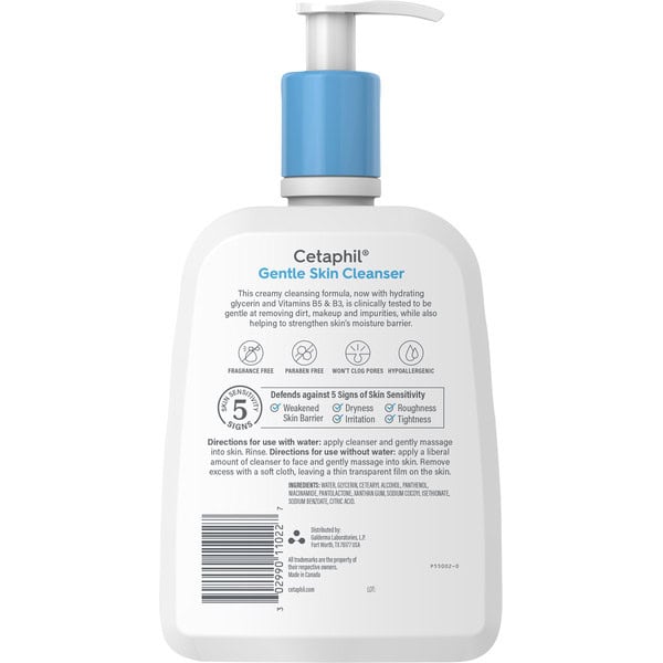 Be kind to your sensitive skin with CETAPHIL Gentle Skin Cleanser, a creamy, non-foaming daily facial cleanser that’s ideal for dry to normal skin types. This gentle yet effective face wash uses micellar technology to remove dirt, makeup and impurities while hydrating the skin, helping to keep your skin’s natural pH balance in check. Formulated with a new blend of key ingredients: hydrating glycerin, panthenol (vitamin B5) to hydrate, soothe and preserve the skin barrier, and niacinamide (vitamin B3) to help smooth skin’s texture and retain skin’s moisture barrier. It hydrates and soothes as it cleans to reinforce the skin’s natural moisture barrier and provide 48 hours of hydration when wiped off, helping to defend against 5 signs of skin sensitivity. Hypoallergenic, soap free, fragrance free, paraben free and sulfate free to clean without irritation and without clogging pores, leaving your skin feeling soft and smooth. Clinically tested for even the most sensitive skin.
