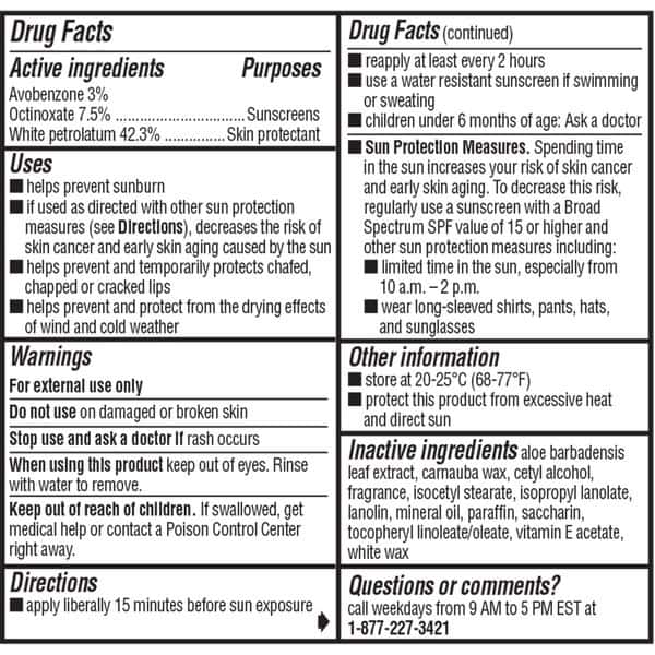 • Non-tinted and paraben free, this SPF 15 lip balm features moisturizing sun protection