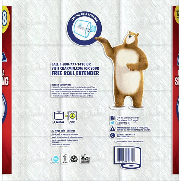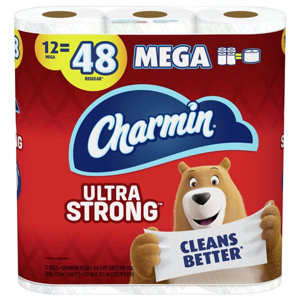 Charmin Ultra Strong is woven like a washcloth and just cleans better than the leading bargain brand, so you can be Charmin clean and proud of it. It’s 4X stronger* and you can use less versus the leading bargain brand. When you buy Charmin Ultra Strong Mega Roll toilet paper, you get a long-lasting roll because one Charmin Mega Roll equals 4 Regular Rolls**. We all go to the bathroom, those who go with Charmin Ultra Strong Mega Roll toilet paper really Enjoy the Go! (*when wet vs. the leading bargain brand; **Based on number of sheets in Charmin Regular Roll bath tissue)