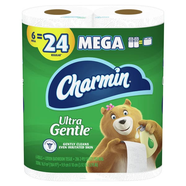 • Pack contains 6 Rolls (286 sheets per roll) of Charmin Ultra Gentle Toilet Paper