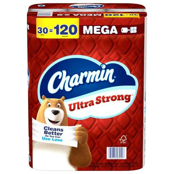 • Pack contains 30 Mega Rolls (242 Sheets Per Roll) of Charmin Ultra Strong Toilet Paper