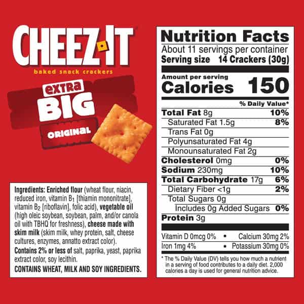 • Ignite cravings with the crunchy bite and bold cheese flavor found in each and every Cheez-It cracker; Made extra big for even more to crunch on