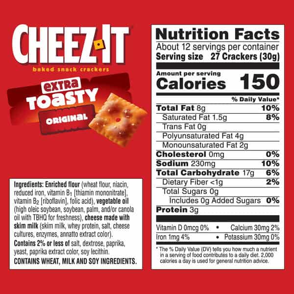 Make snack time more fun with Cheez-It Extra Toasty baked snack crackers, bite-size cheese crackers that are baked to crispy perfection. Cheez-It baked snack crackers are the real deal, made with 100% real cheese that’s been carefully aged and toasted for a yummy, irresistible taste bursting with real cheese goodness. Every single cracker has been baked to crisp, toasty perfection for an added snap with each bite; Cheez-It crackers are delicious cheese snacks that are perfect for game time, party spreads, school snacks, late-night snacking and more. The cheesy options are endless. Go ahead and enjoy your favorite cheese crackers. You’ll love the one-of-a-kind toastiness and real cheese in every tasty handful of Cheez-It Extra Toasty baked snack crackers.​