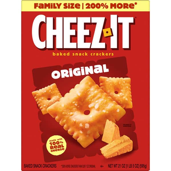 Outrageously cheesy and ridiculously craveable, Cheez-It baked snack crackers are deliciously crunchy little crackers that have captured cheese-lovers for decades. Discover a crowd-favorite snack made with 100% real cheese baked to crispy perfection for an irresistible taste in every crunchy bite. Each lightly salted cracker is loaded with a burst of cheesy flavor; Cheez-It baked snack crackers are a fan-favorite for game night, school snacks, family movie nights, party spreads, late-night snacking, and so much more, the cheesy options are endless. Delicious for all ages, grab a box of Cheez-It Original crackers for every family snacking moment. Whether you’re packing them in school lunches, grabbing some for the office, or taking along on a road trip, you’ll find a delicious, crisp snack that is filled with big cheese flavor. It’s no wonder that these bite-sized crackers have become a crowd-favorite, bringing smiles and that urge for just one more handful.