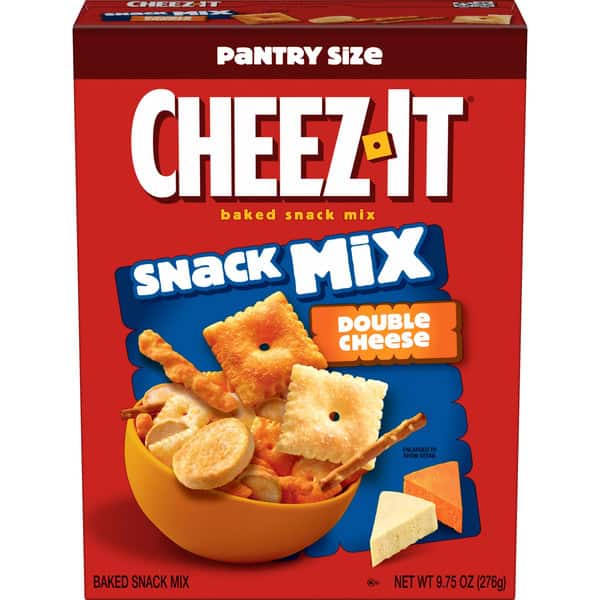 Satisfy your snack time cravings with a delicious handful of Cheez-It Snack Mix Double Cheese. Featuring a tasty combination of crackers made with real cheese, salty pretzels, mini toasted bread slices, and scrumptious cheese curls that have been baked to crispy, crunchy perfection. Great for sharing and made for easy, sensible snacking, Cheez-It Snack Mix Double Cheese is the ideal companion for lunchboxes, after-school snacks and busy, on-the-go moments. Each handful provides a satisfying, cheesy crunch with every bite.