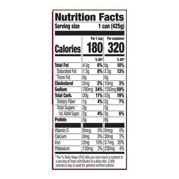 Tomatoes (tomato Puree, Water), Water, Enriched Wheat Flour (wheat Flour, Malted Barley Flour, Niacin, Reduced Iron, Thiamine Mononitrate [vitamin B1], Riboflavin [vitamin B2], Folic Acid), Beef, Crackermeal (enriched Wheat Flour [bleached Wheat Flour, Niacin, Reduced Iron, Thiamine Mononitrate, Riboflavin, Folic Acid], May Contain Guar Gum), Less Than 2% Of: High Fructose Corn Syrup, Salt, Modified Corn Starch, Soybean Oil, Carrots, Textured Vegetable Protein (soy Flour, Soy Protein Concentrate, Caramel Color), Wheat Gluten, Dehydrated Onion, Caramel Color, Citric Acid, Flavoring, Enzyme Modified Cheese (cheddar Cheese [pasteurized Milk, Cultures, Salt, Enzymes], Cream, Water, Salt, Sodium Phosphate, Xanthan Gum, Carotenal [color]).